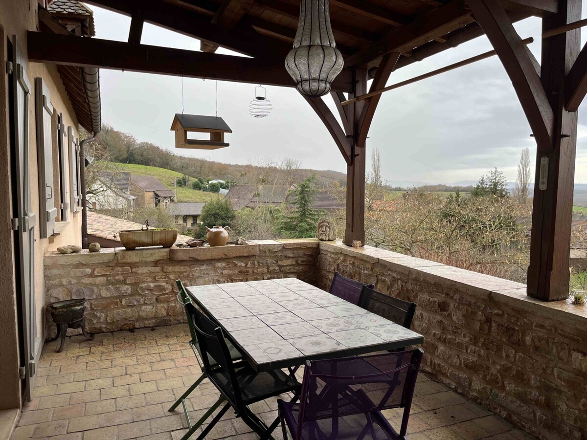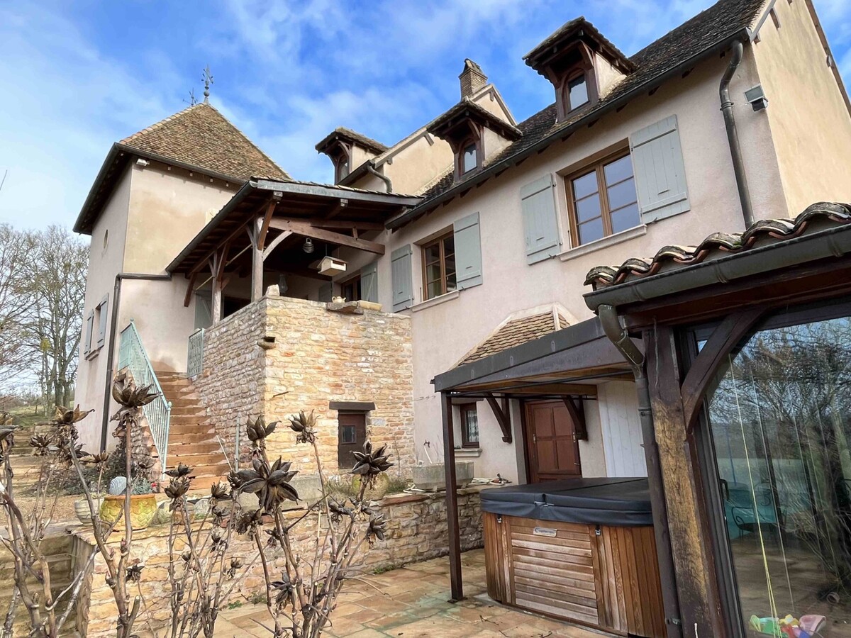 A VENDRE, OUEST TOURNUS 14 KM, situation dominante, vue imprenable et grand calme, sur 7700 m² de terrain offrant un cadre de vie d'exception. Cette propriété aux volumes généreux de 270 m² habitables est une belle construction traditionnelle bourguignonne. Elle allie charme et confort avec des matériaux nobles et qualitatifs. Elle propose au rez-de-chaussée : entrée/grand dégagement et sanitaires, cuisine entièrement équipée avec îlot central, séjour /salon avec cheminée de style bourguignon et plafond à la française, deux chambres, salle d'eau, véranda, bureau, dressing et toilettes séparées. Les pièces de réception donnent sur la terrasse couverte bien exposée. Au dessus : belle pièce de détente avec espace salon en estrade, suite parentale complète et une quatrième chambre avec salle d'eau privative. En rez-dejardin : cuisine d'été, cellier, chaufferie/buanderie, cave. La détente s'invite avec une piscine intérieure chauffée baignée de lumière, idéale pour tous les moments de l'année. La maison dispose de dépendances : garage, préau, four à pain, remise de jardin, cabanon bois et de terrasses. Très bonne isolation, pompe à chaleur air/eau récente et assainissement communal. Le jardin arboré s'intégre bien dans le cadre naturel des lieux, il est clos avec une belle entrée, portail automatisé, muret pierre, des fruitiers et un potager. Bien rare avec tous les atouts pour faire de ce lieu votre propriété familiale en Bourgogne du Sud.
