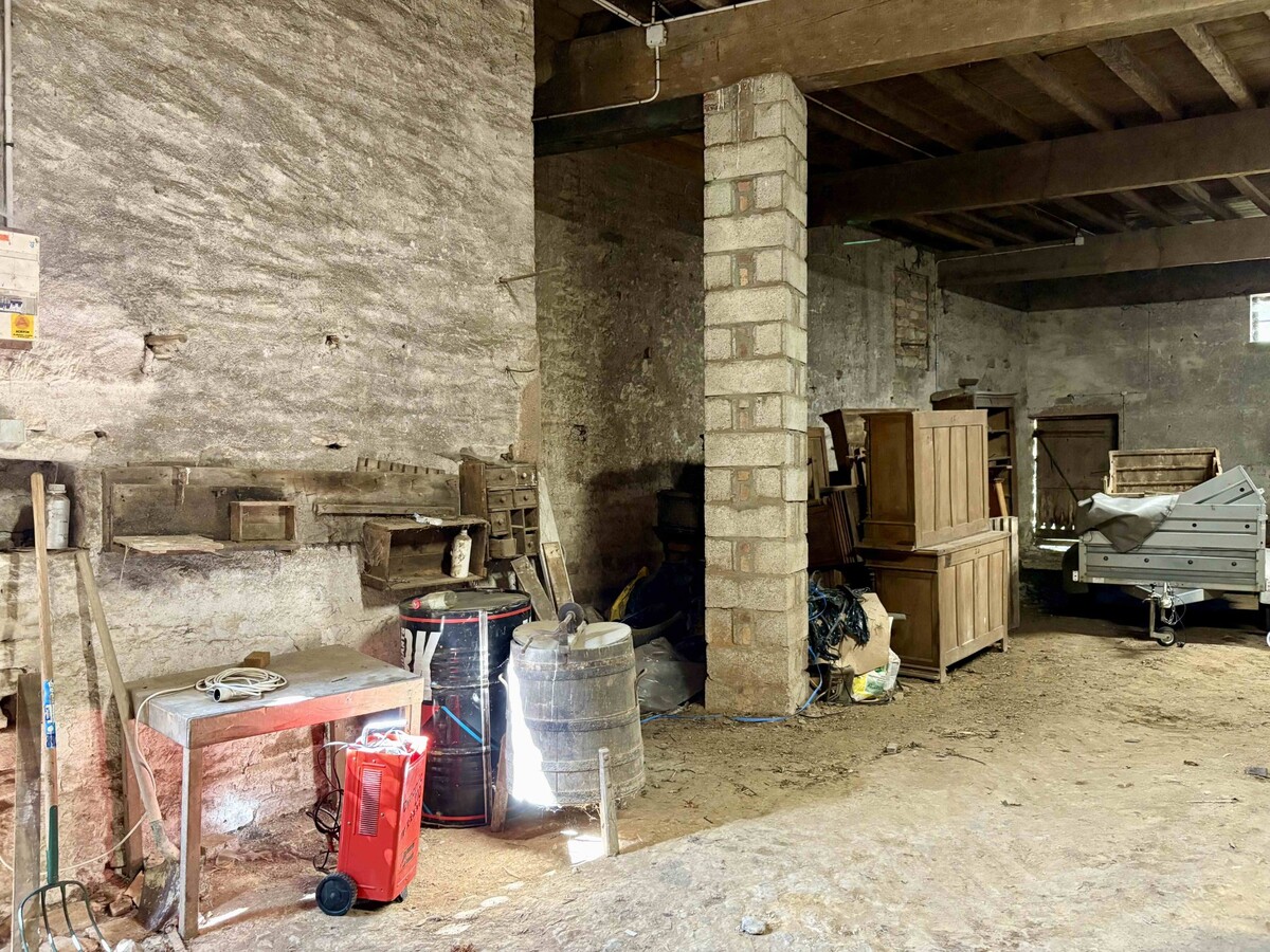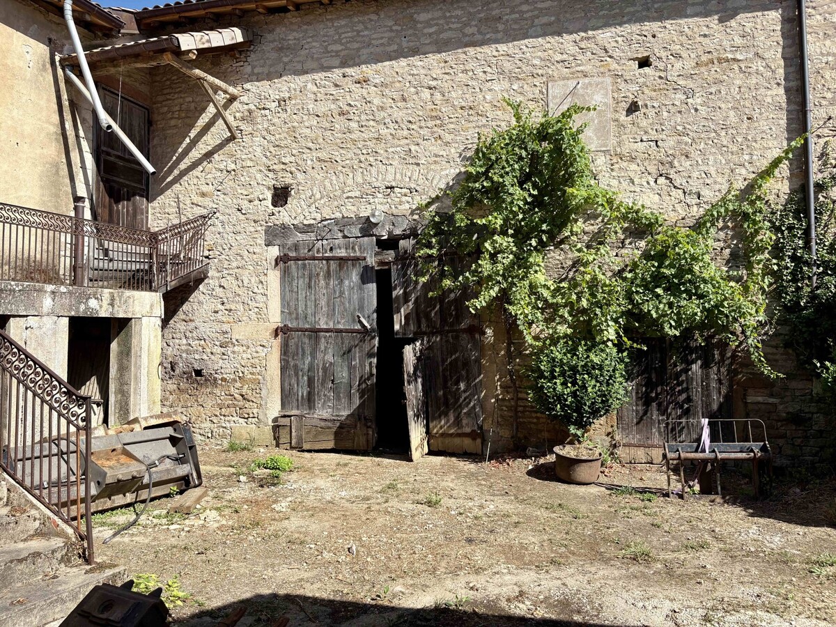 A VENDRE, 6 MN OUEST de TOURNUS, MAISON DE CARACTERE AVEC TOUR, 95 m² habitables avec ancien cuvage, cour et petit jardin. Cette authentique maison en pierre de Bourgogne, pleine de cachet se distingue par sa petite tour carrée typique et pleine de charme. L'habitation se compose au premier étage sur caves : d'une entrée distribuant séjour, cuisine/salle à manger, deux chambres, salle d'eau et toilettes séparées. Combles aménageables au-dessus. Un cuvage attenant de 235 m² au sol offre un potentiel remarquable pour un projet de rénovation ou espace de stockage. Des travaux de rénovation sont à prévoir mais les toitures et charpentes ont été refaites entièrement en 2024, un atout majeur pour aborder le projet sereinement. A l'extérieur, vous profiterez d'une cour intime, close de murs avec petite dépendance et d'un jardinet sur l'arrière. L'ensemble sur 678 m², au calme, au cœur d'un village avec petite épicerie/restaurant, non loin des commodités de Tournus.