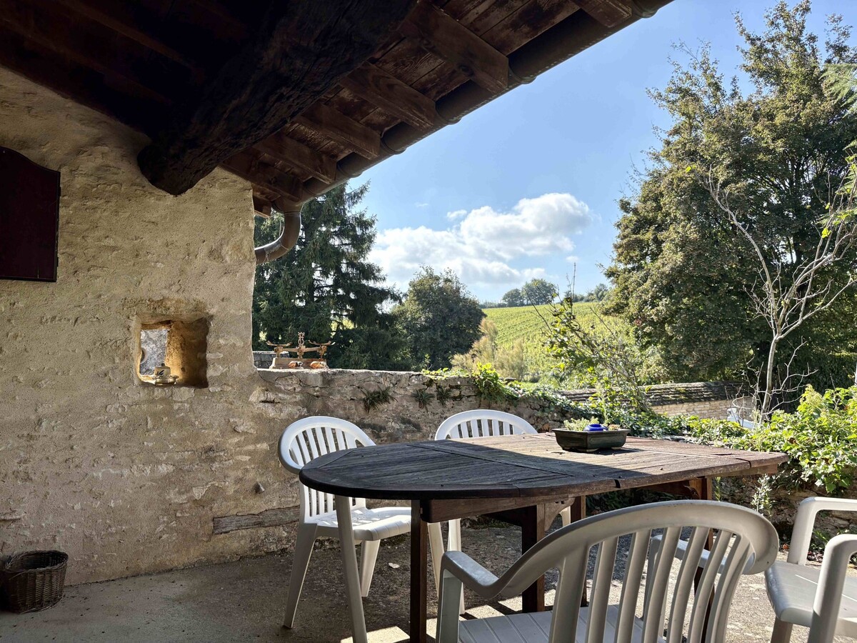 A VENDRE, CHARDONNAY, au cœur d'un village viticole, charmante maison en pierre de 140 m² sur un terrain de 616 m². Elle comprend au premier niveau : entrée sur grand salon avec poêle à bois, cuisine aménagée ouverte sur une vaste salle à manger, deux chambres, une salle d'eau, une salle de bains et des toilettes séparées. Au dessus, desservi par un escalier bois, deux grandes chambres mansardées. En rez-de-chaussée, de vastes dépendances complètent l'ensemble : trois caves, une grange et un atelier. La maison dispose d'un chauffage électrique associé au poêle à bois et d'une isolation complète des murs et des combles. Les huisseries sont en double vitrage bois. La production d'eau chaude est assurée par deux cumulus électriques. Côté extérieur, vous serez séduit par une terrasse couverte exposée Ouest, avec vue sur les vignes, elle est idéale pour profiter des beaux jours, ainsi que le jardin de 616 m². Cette maison reflète tout le charme bourguignon avec ses murs en pierre et ses poutres apparentes, qui apportent charme et authenticité. Le tout est situé à quelques kilomètres de Tournus et de ses commodités.