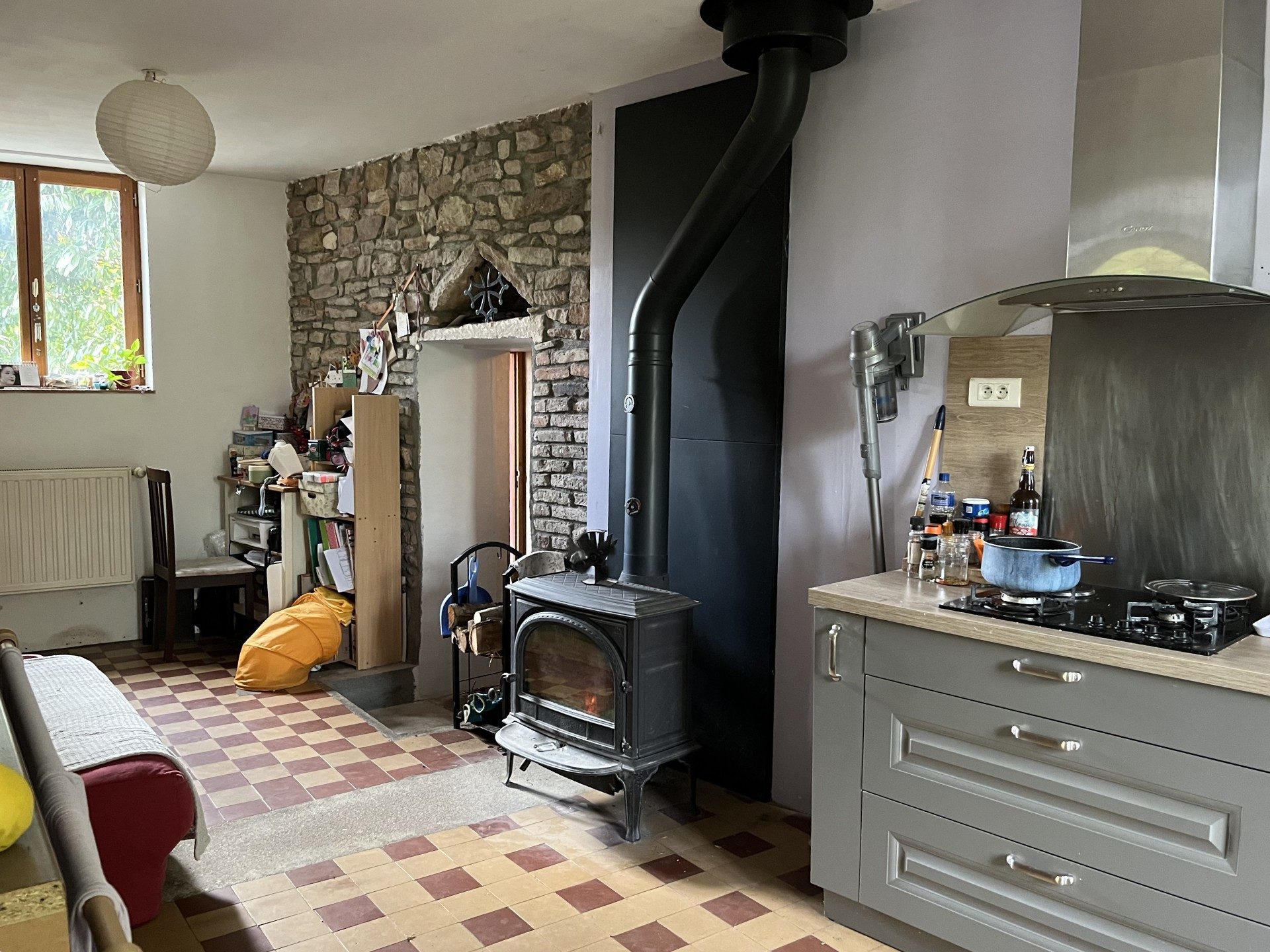 A VENDRE, TOURNUS entrée Sud, maison ancienne de 115 m² habitables environ sur terrain de 2109 m² clos et arboré. L'habitation comprend au rez-de-chaussée : entrée, cuisine aménagée avec poêle à bois, salon/salle de jeux, buanderie, un couloir desservant salle de bains, toilettes séparées et une vaste pièce de détente ouvrant sur la terrasse exposée Sud-Est. Au dessus : trois chambres dont deux en enfilade et la troisième mansardée. La maison dispose d'une chauffage central au gaz de ville mais la puissance du poêle permet facilement de chauffer l'ensemble du logement. Double vitrage bois et PVC des huisseries, les toitures sont en bon état avec film de protection, l'isolation est complète et l'assainissement est autonome. L'ensemble se situe sur un agréable terrain avec fruitiers, cour à l'avant, petites dépendances attenantes à usage de chaufferie et stockages, puits et citerne d'eau enterrée. Le tout sans voisinage et proche de l'axe.
