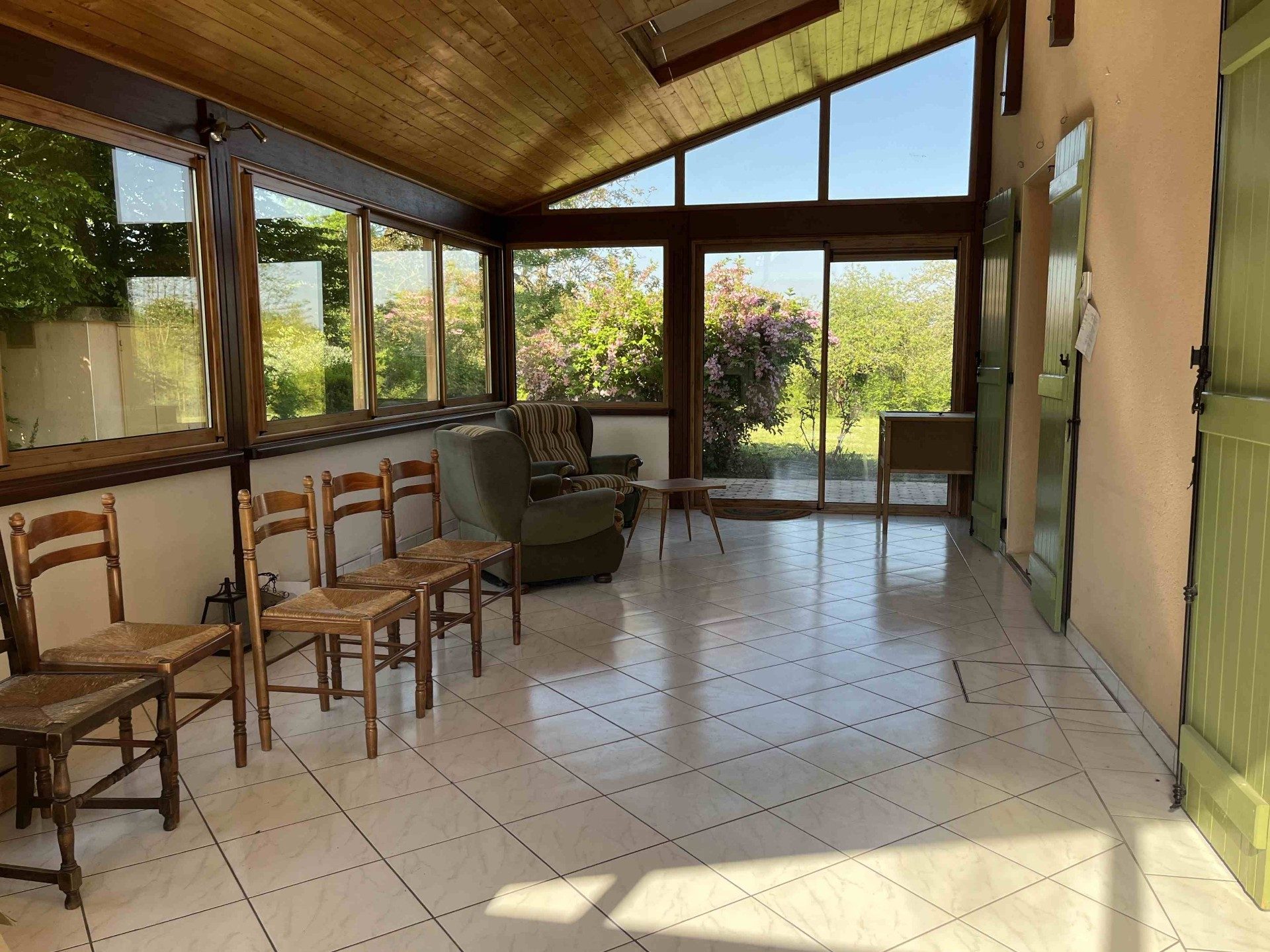 A VENDRE, Bourg de Simandre, vaste villa traditionnelle de belle construction (1992/93), 344 m² habitables environ avec grande véranda et dépendances, le tout sur 5500 m² de terrain. L’habitation comprend, au rez-de-chaussée : une vaste entrée avec bibliothèque desservant une cuisine aménagée, un séjour avec une belle cheminée en pierre à foyer ouvert et un plafond cathédrale ouvrant sur une véranda chauffée de 35 m² avec un four à pain. Un couloir dessert deux chambres, une salle d’eau avec douche italienne et toilettes, autres toilettes séparées, cellier, buanderie et chaufferie. Au premier étage : un dégagement dessert six chambres, des toilettes séparées, une salle de bains, une cuisine ainsi qu’un vaste salon/séjour. Au dessus, des combles peuvent être aménagés. La maison est équipée d’un système de chauffage central de type géothermie au sol, l’isolation est complète et performante (DPE B). Les huisseries sont en double vitrage bois. L’assainissement est relié au tout à l’égout et les toitures sont en bon état apparent. La maison dispose de nombreux équipements (placards de rangement, adoucisseur, aspiration centralisée, prises audio au rdc et des rideaux électriques sur Velux.) A ceci s’ajoutent des dépendances attenantes : garage, atelier, une jardinerie et une remise indépendante sur le terrain. Le tout, dans un environnement paisible, en plein cœur du village, proches des commerces et commodités.