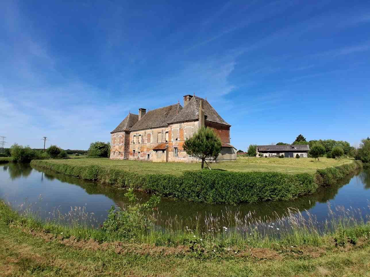 A VENDRE CHATEAU AU CŒUR DE LA BRESSE BOURGUIGNONNE SUR 4,25 Ha. Découvrez l'univers de ce Château de campagne en partie entouré de douves conservé dans son état d'origine avec une base du XVe remaniée au XVIIIe. Ce château en brique est constitué d'un corps central flanqué de deux grosses tours rectangulaires. Il offre un potentiel de 500 m² d'habitation réparties sur 2 niveaux, et dans les combles, 250 m² aménageables sous une magnifique charpente en carène de bateau. Structures conversées avec bel escalier central en bois, plafond à la française, belle hauteur sous plafond et de larges et nombreuses ouvertures laissant pénétrer la lumière. Deux dépendances agricoles d'environ 300 m² chacune peuvent élargir le potentiel et ouvrir les lieux à d'autre projet.(événementiel, artistique ou privé). Le cadre verdoyant et bucolique des 4,25 ha entourant le Château, associé à la quiétude rurale donne à ce lieu une opportunité pour des amateurs de grands et beaux projets. Cette propriété se situe à une trentaine de minutes des autoroutes A6 et A39.