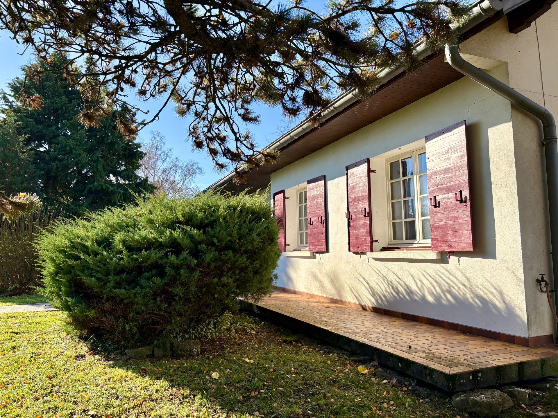 A VENDRE, BEL EMPLACEMENT MAISON TRADITIONNELLE de 78m² habitables sur terrain clos en partie et arboré de 3 390 m². L’habitation comprend de plain-pied : une entrée desservant une cuisine, un salon /salle à manger avec cheminée à foyer ouvert, cette pièce traversante ouvre sur une terrasse de plain-pied à l’avant et d’un large balcon suer l’arrière avec vue dégagée sur le terrain et la campagne voisine. Un couloir dessert deux chambres, une salle de bains et des toilettes séparées. Combles facilement aménageables dont l’accès reste à créer. Au rez de chaussée : un grand garage, une chaufferie /buanderie avec point d’eau et un espace de stockage. A ceci s’ajoute un cabanon de jardin. La maison dispose d’un chauffage central au fuel avec une chaudière de 2011 et assurant la production d’eau chaude. Les huisseries sont en bois avec survitrage, volets bois avec renfort. La toiture est en bon état. Doublage brique sur les murs et laine de verre et plaques sur les rampants. L’assainissement individuel est non conforme. Cette maison est bien entretenue, sa distribution est fluide et l’ensemble est lumineux. Elle se situe sur un beau terrain, avec barrière en métal/muret, portail et portillon, sur toute sa largeur. L’ensemble dans un quartier calme et privilégié de Tournus, avec vue dominante sur la campagne et à quelques minutes du Centre-Ville avec toutes ses commodités.