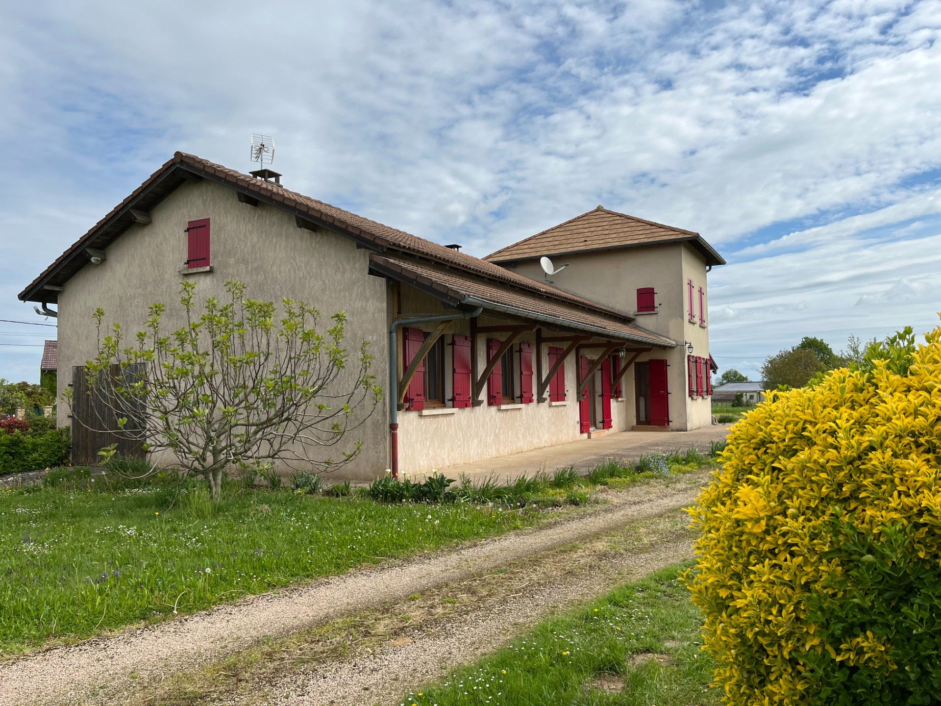 A VENDRE, TOURNUS NORD, 3 mn de l'axe, vaste villa de 1986 de belle construction traditionnelle avec tour, 158 m² habitables sur un terrain de 3600 m² avec une vue dégagée. Elle comprend au rez-de-chaussée : entrée sur cuisine équipée/espace repas et cheminée insert, séjour, bureau, trois chambres, dégagement, salle de bains, toilettes séparées, cellier et une buanderie avec double accès (étage et extérieur). Au-dessus : mezzanine dans la tour desservant un studio/quatrième chambre avec espace à vivre/petite cuisine, salle d’eau avec toilettes et un grenier. Deux garages attenants et une cave complètent l’ensemble. Le logement est équipé d’un chauffage au bois avec insert et répartiteur de chaleur, radiateurs électriques en complément. Les huisseries sont en double vitrage PVC de 2018 principalement avec volets bois. L’isolation d’origine est complète avec VMC. La toiture est en très bon état avec une bonne isolation, seule la buanderie n'est pas chauffée impactant le DPE. La maison dispose d’une fosse septique avec épandage (travaux de mise en conformité à prévoir). L’ensemble est lumineux avec une belle qualité de construction, la distribution est agréable. Elle se situe dans un environnement rural et agricole avec un terrain plat et petit verger en limite. Belle vue dégagée sur la campagne environnante.
