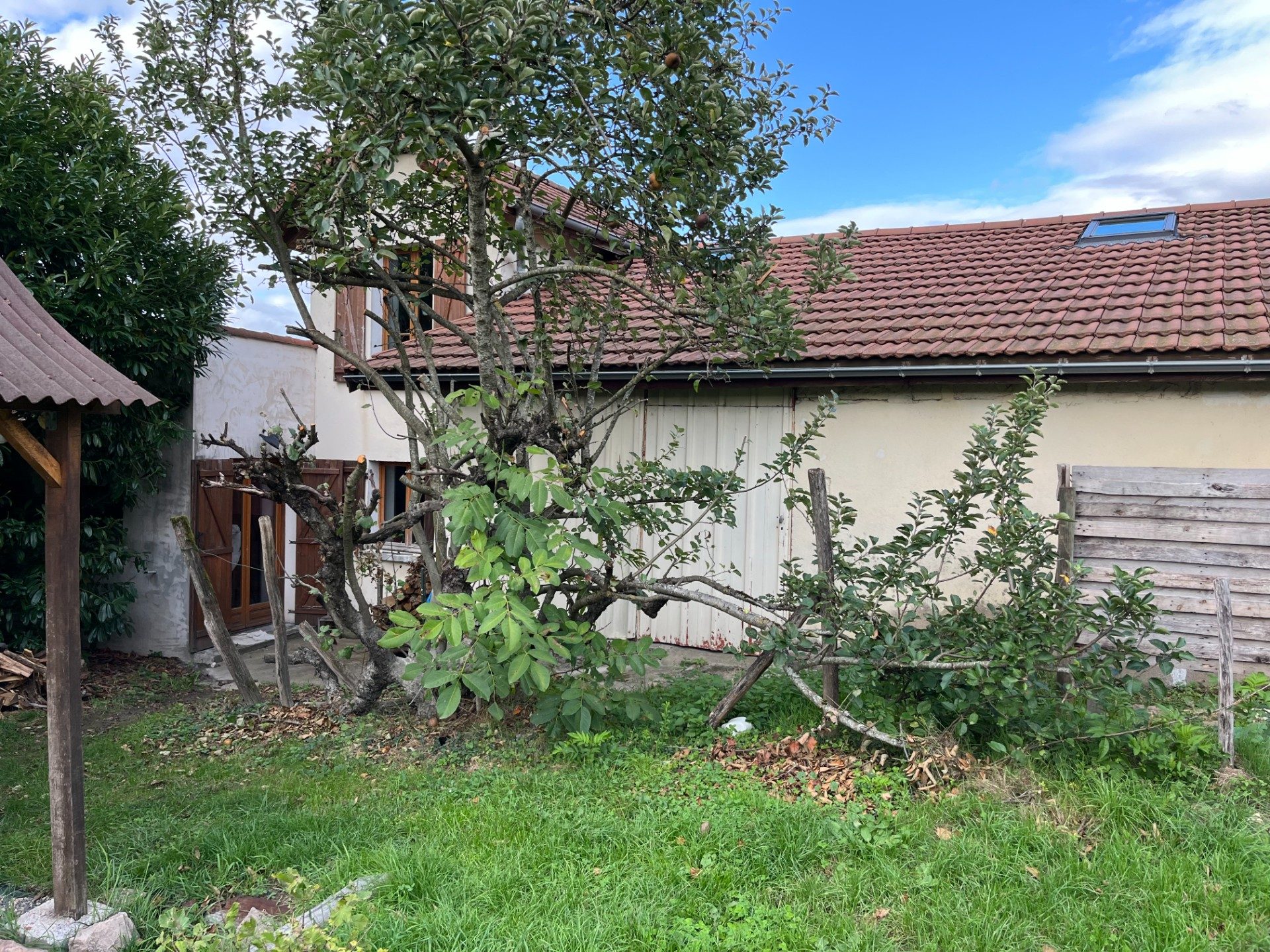 A VENDRE, TOURNUS entrée Sud, maison ancienne de 115 m² habitables environ sur terrain de 2109 m² clos et arboré. L'habitation comprend au rez-de-chaussée : entrée, cuisine aménagée avec poêle à bois, salon/salle de jeux, buanderie, un couloir desservant salle de bains, toilettes séparées et une vaste pièce de détente ouvrant sur la terrasse exposée Sud-Est. Au dessus : trois chambres dont deux en enfilade et la troisième mansardée. La maison dispose d'une chauffage central au gaz de ville mais la puissance du poêle permet facilement de chauffer l'ensemble du logement. Double vitrage bois et PVC des huisseries, les toitures sont en bon état avec film de protection, l'isolation est complète et l'assainissement est autonome. L'ensemble se situe sur un agréable terrain avec fruitiers, cour à l'avant, petites dépendances attenantes à usage de chaufferie et stockages, puits et citerne d'eau enterrée. Le tout sans voisinage et proche de l'axe.