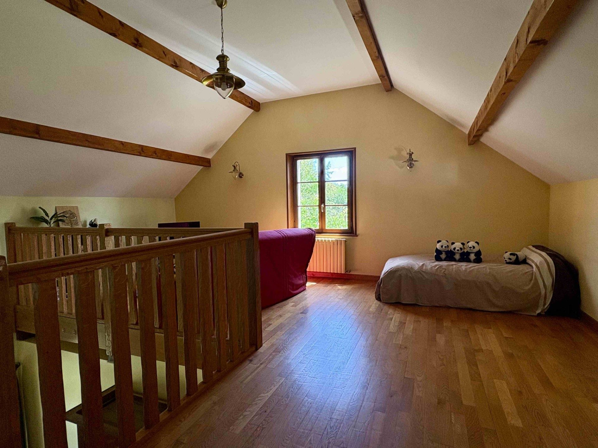 A VENDRE MAISON TRADITIONNELLE DE CHARME EN BORD DE SEILLE, 214 m² habitables avec grand garage sur vaste terrain arboré de 4824 m². C'est dans une impasse paisible, que vous découvrirez cette maison d’artisans, de belle construction, un bien rare qui allie tranquillité et confort dans cadre naturel exceptionnel. L’habitation sur deux niveaux comprend : au rez-de-chaussée : une grande entrée traversante, un séjour avec cheminée insert et baie vitrée donnant sur la terrasse couverte de 54 m², cuisine équipée chêne, cellier et buanderie. Dégagement desservant, une chambre, une salle d’eau et des toilettes séparés. A l’étage avec sol parquet chêne : une mezzanine, quatre chambres dont une avec dressing, une salle de bains complète avec douche et baignoire et des toilettes séparées. La maison est équipée d’un chauffage central au fuel avec dalle chauffante au rez-de-chaussée associé à la cheminée insert et des radiateurs en fonte à l’étage. Les huisseries sont en double vitrage bois, volets bois, la baie vitrée est en aluminium avec volet roulant automatisé. L’isolation est complète avec doublage laine de verre et briquetage. La toiture est en bon état apparent avec film de protection. Elle bénéficie d’une aspiration centralisée. L’assainissement est autonome avec seulement un regard manquant pour être en conformité. Des dépendances attenantes : garage double entièrement isolé et cave enterrée de belle hauteur. Cour à l’avant avec grand espace de parking, portail électrique sécurisé. Le jardin sur l’arrière est arboré, dans un environnement privilégié du bord de Seille, sur une portion non inondable de la rivière. Les extérieurs sont parfaits pour profiter de la nature, de balades ou parties de pêche au bord de Seille et de soirées paisibles sur la terrasse, sans vis-à-vis. Un lieu unique à vivre. Le tout, dans un charmant village, non loin des commodités de Tournus et Cuisery.