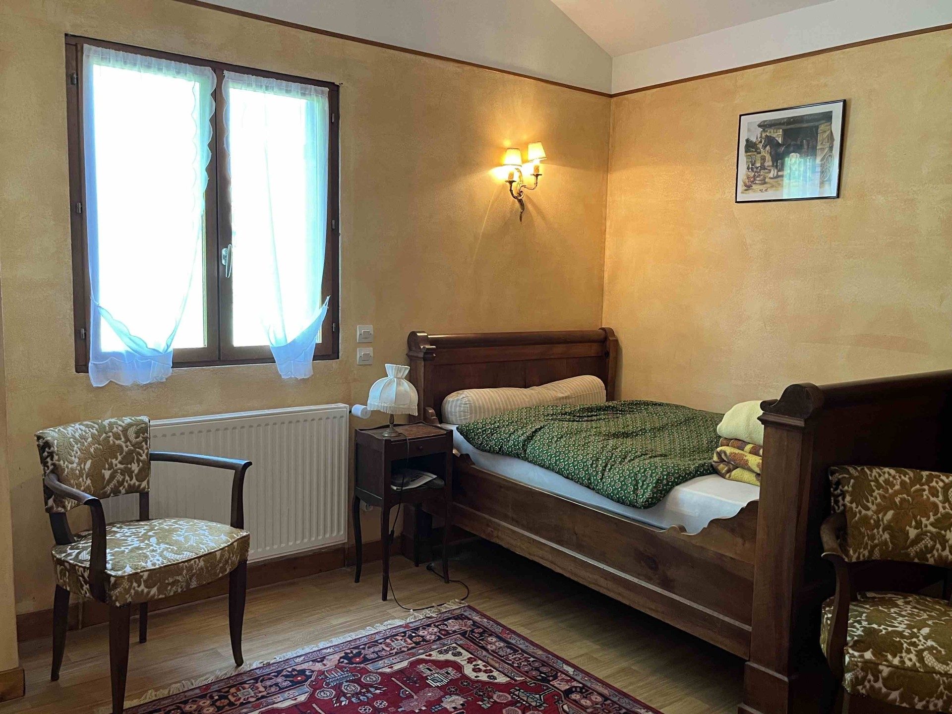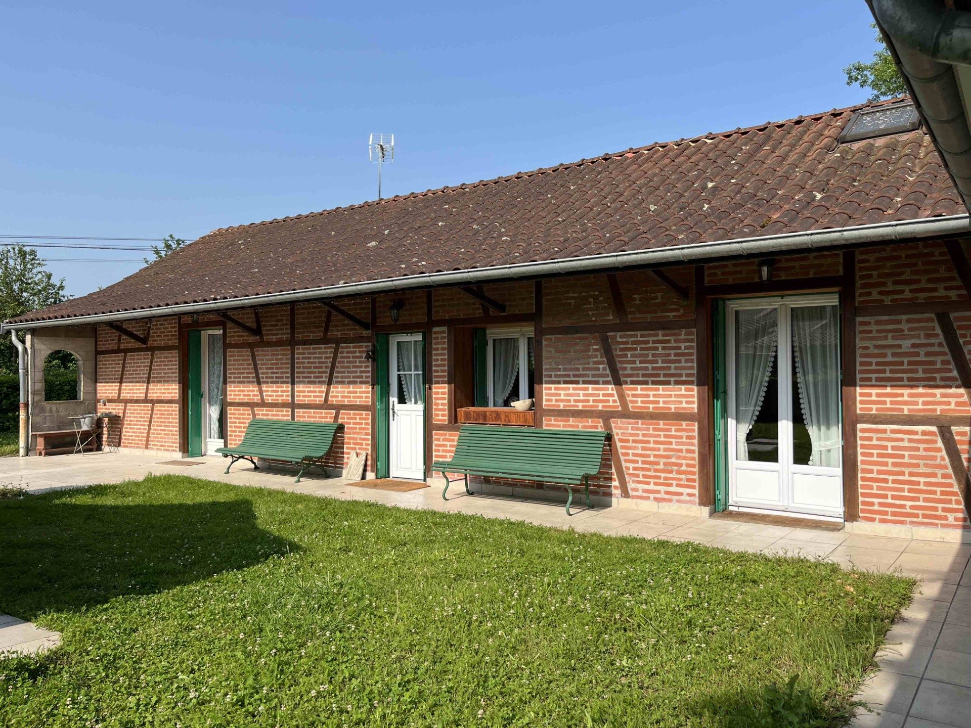 A VENDRE, MONTPONT EN BRESSE, longère en brique et pisée, rénovée, 160 m² environ habitables incluant une extension indépendante (66 m²) plus récente. L'ensemble sur un terrain de 4 589 m² avec dépendances. La partie ancienne de plain-pied comprend : entrée sur cuisine aménagée avec espace repas, salon avec cheminée insert et porte fenêtre ouvrant sur la terrasse, une grande chambre avec placards muraux, bureau avec porte fenêtre donnant sur la terrasse arrière. Un dégagement dessert salle de bains, toilettes séparées et deux petites pièces en enfilade à usage de lingerie/dressing. L’extension attenante avec entrée indépendante comprend au rez-de-chaussée : une agréable cuisine d’été avec toute la façade en baies vitrées, réserve et cave de dégustation. Au-dessus : dégagement desservant deux chambres, salle d’eau et toilettes séparées. A ceci s’ajoutent des dépendances attenantes : garage avec porte récente automatisée, atelier de 50 m², cave de garde, réserve, buanderie avec toilettes et chaufferie. Autres dépendances séparées de 40 m² comprenant bûcher et deux remises. Petite construction face à la maison avec four à pain, barbecue et puits en état d’usage. L’ensemble est équipé d’un chauffage central avec pompe à chaleur air/eau (2024). Les huisseries sont principalement anciennes avec double vitrage bois sauf sur l’arrière double vitrage PVC. L’isolation est partielle. Les toitures sont en bon état apparent. L’assainissement non collectif est à mettre en conformité ainsi que l'électricité. Le terrain de 4589 m² est arboré avec un petit pré sur l'arrière. Le tout dans un environnement rural avec les commerces de proximité dans le bourg, à moins d'1 Km.