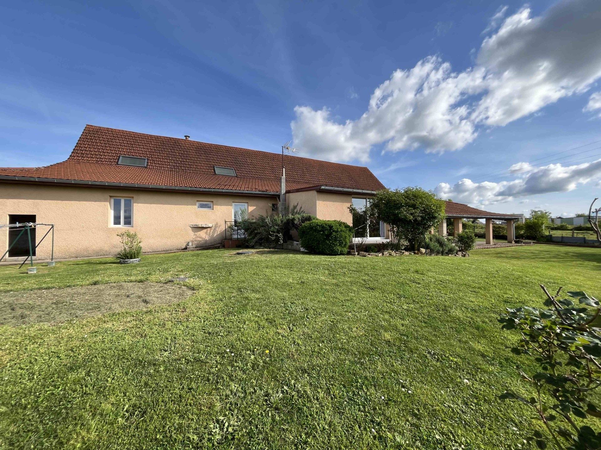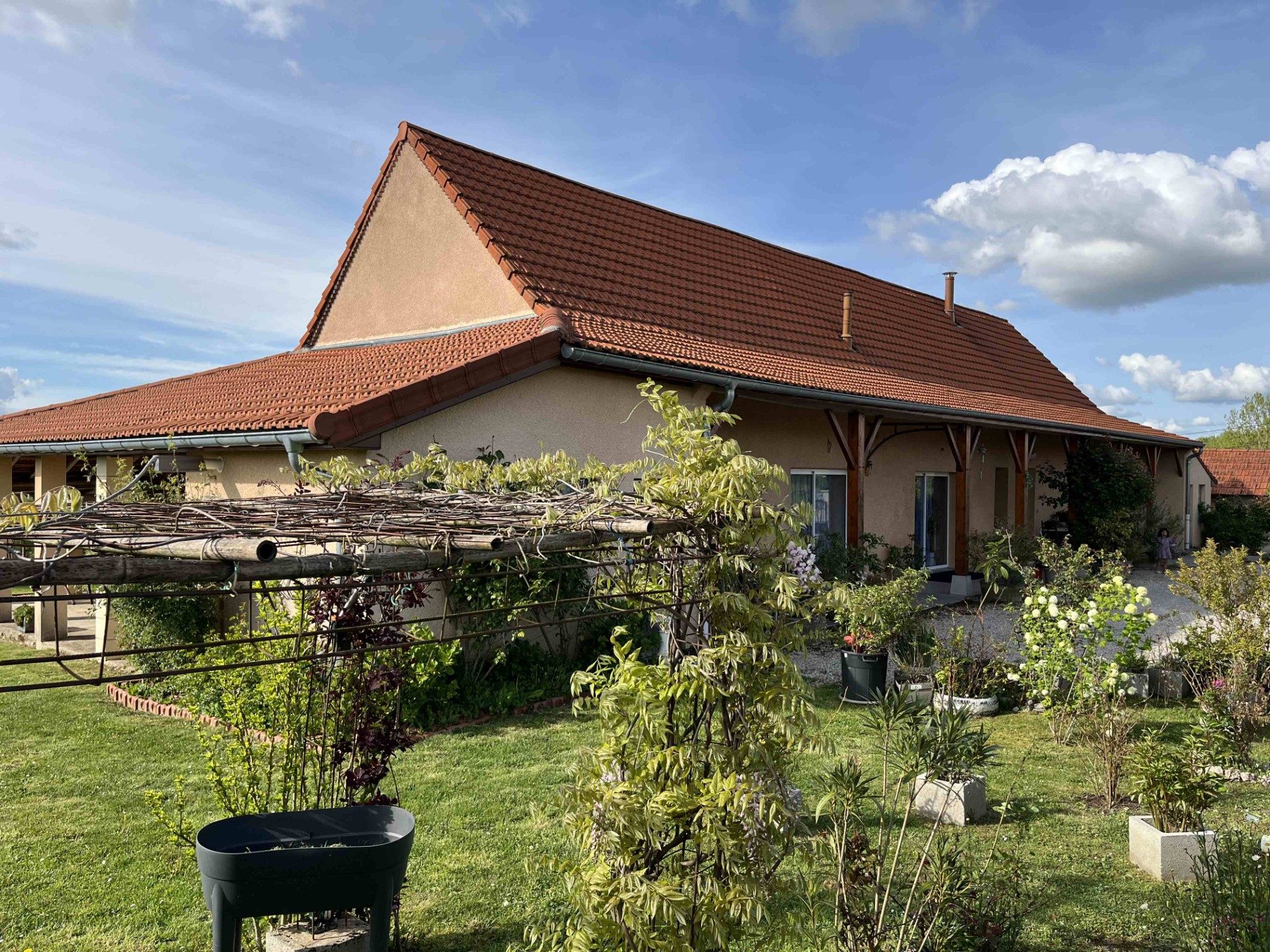 A VENDRE, AXE TOURNUS-LOUHANS, proche CUISERY, vaste ferme rénovée de type longère, 250 m² habitables principalement de plain-pied, 10 pièces sur terrain clos et arboré de 2200 m² avec puits et dépendances. L'habitation comprend une vaste pièce de vie avec salle à manger, espace salon, cuisine aménagée, buanderie, salle de bains avec toilettes, cinq chambres, une pièce de détente/salon, une salle d'eau et d'autres toilettes séparées. Toutes les pièces de vie du rez-de-chaussée s'ouvrent sur l'extérieur avec des baies vitrées. Au dessus : deux chambres mansardées en enfilade avec accès extérieur. La maison est équipée d'un poêle à granules dans la pièce de vie et d'un poêle à bois dans la cuisine qui complètent le chauffage central au gaz de ville avec chaudière de 2021. L'isolation est complète et les huisseries sont en double vitrage PVC. L'électricité et l'assainissement (fosse septique) sont aux normes. Toutes les toitures sont en très bon état. Cette maison est adaptée pour recevoir des personnes à mobilité réduite. Elle est idéale pour une famille d'accueil. Vaste terrasse couverte exposée Sud-Ouest et des dépendances attenantes. Deux dépendances séparées et un puits. La situation est dominante et dégagée sur la campagne. L'environnement est très calme, non loin des commodités et écoles de Cuisery.
