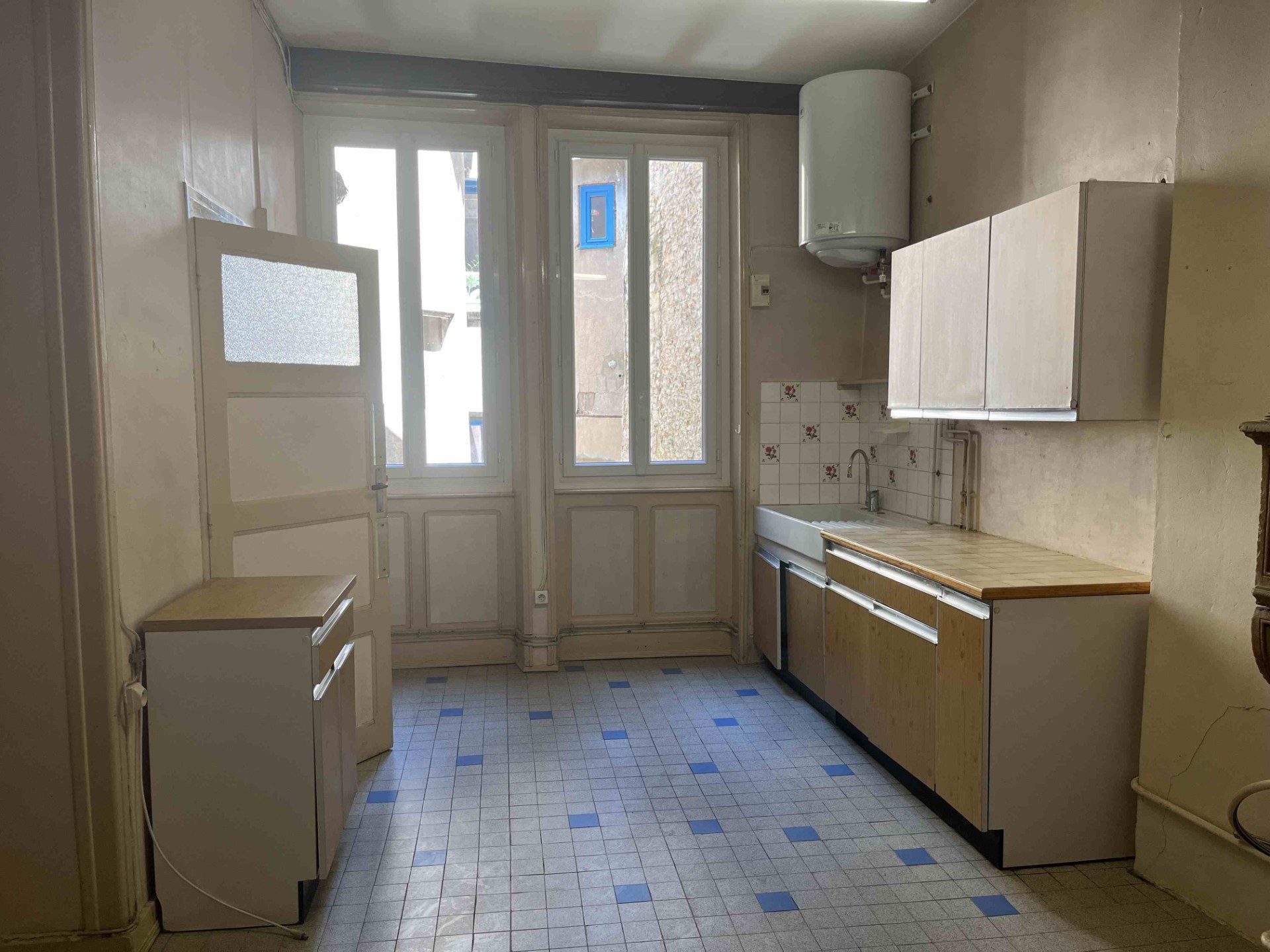 A VENDRE, TOURNUS, CŒUR DE VILLE, Immeuble composé de deux logements et d'un local commercial. Il comprend : au rez-de-chaussée : local commercial avec réserve, coin cuisine et toilettes de 57 m², actuellement loué 430 €/mois. Au premier étage : logement de type T2 de 86 m² habitables à rénover : entrée sur couloir, cuisine, séjour/salon avec cheminée, pièce borgne, salle d’eau/WC et une chambre. Chauffage avec radiateurs individuels au gaz de ville, huisseries récentes en PVC. Libre de location. Au deuxième étage : un duplex de type T3 de 117 m² habitables comprenant : entrée sur couloir, cuisine équipée, bureau en alcôve, séjour/salon avec cheminée, salle d'eau, toilettes séparées et buanderie. Au-dessus : dégagement desservant deux chambres et un grenier aménageable. Ce duplex possède un chauffage avec radiateurs individuels au gaz de ville et des huisseries en double vitrage bois et une isolation partielle des combles. Libre de location. Cave voutée en dessous. L’immeuble est en bon état général, des travaux de remise au goût du jour sont à prévoir. Les toitures ont été refaites avec sous-toiture. Il se situe dans la rue commerçante et l'accès aux logements se fait par une belle cour intérieure. L'ensemble, dans une rue commerçante de la ville.