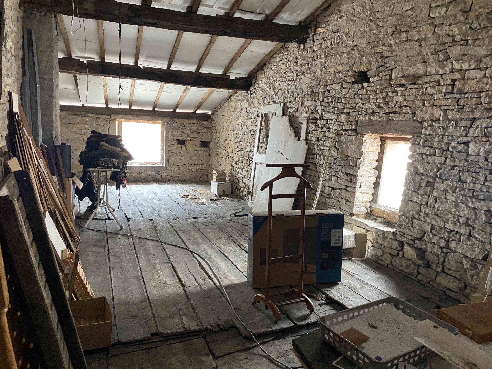 A VENDRE, TOURNUS CŒUR HISTORIQUE, ensemble immobilier en pierre de 120 m² habitables avec cave voutée de 20 m² environ et combles aménageables de 40 m² environ à rénover entièrement. Petite courette entre les murs. L'habitation comprend au rez-de-chaussée : un ancien local commercial, entrée, toilettes séparées, pièce à rénover avec cheminée et accès à la courette, cave voutée au dessous. Au premier étage : dégagement donnant sur 2 pièces avec cheminées actuellement condamnées, salle d’eau avec accès aux combles aménageables par escalier. Chauffage individuel électrique avec cumulus électrique pour la production d’eau chaude. L’habitation nécessite une réhabilitation complète. Exposé Est/Ouest, l'ensemble bénéficie d'un beau potentiel et son emplacement au cœur de Tournus, proche des commerces et de l’Abbaye est majeur.