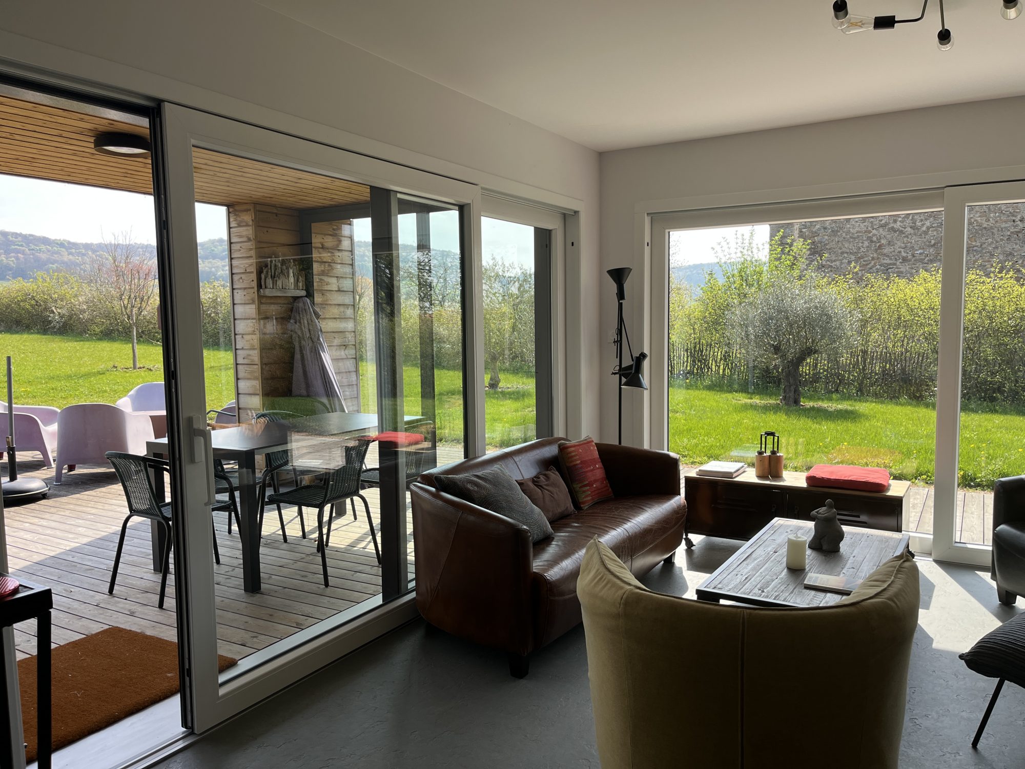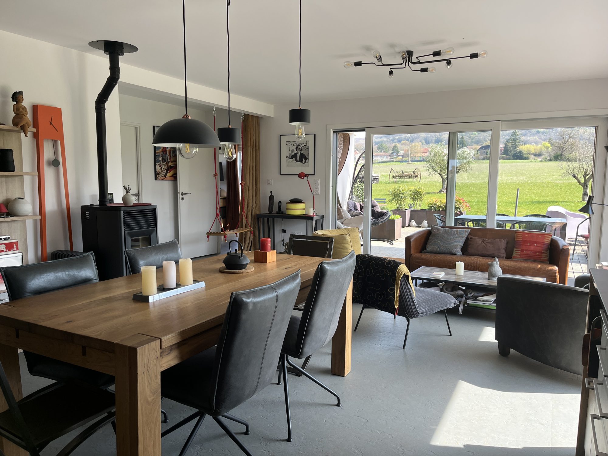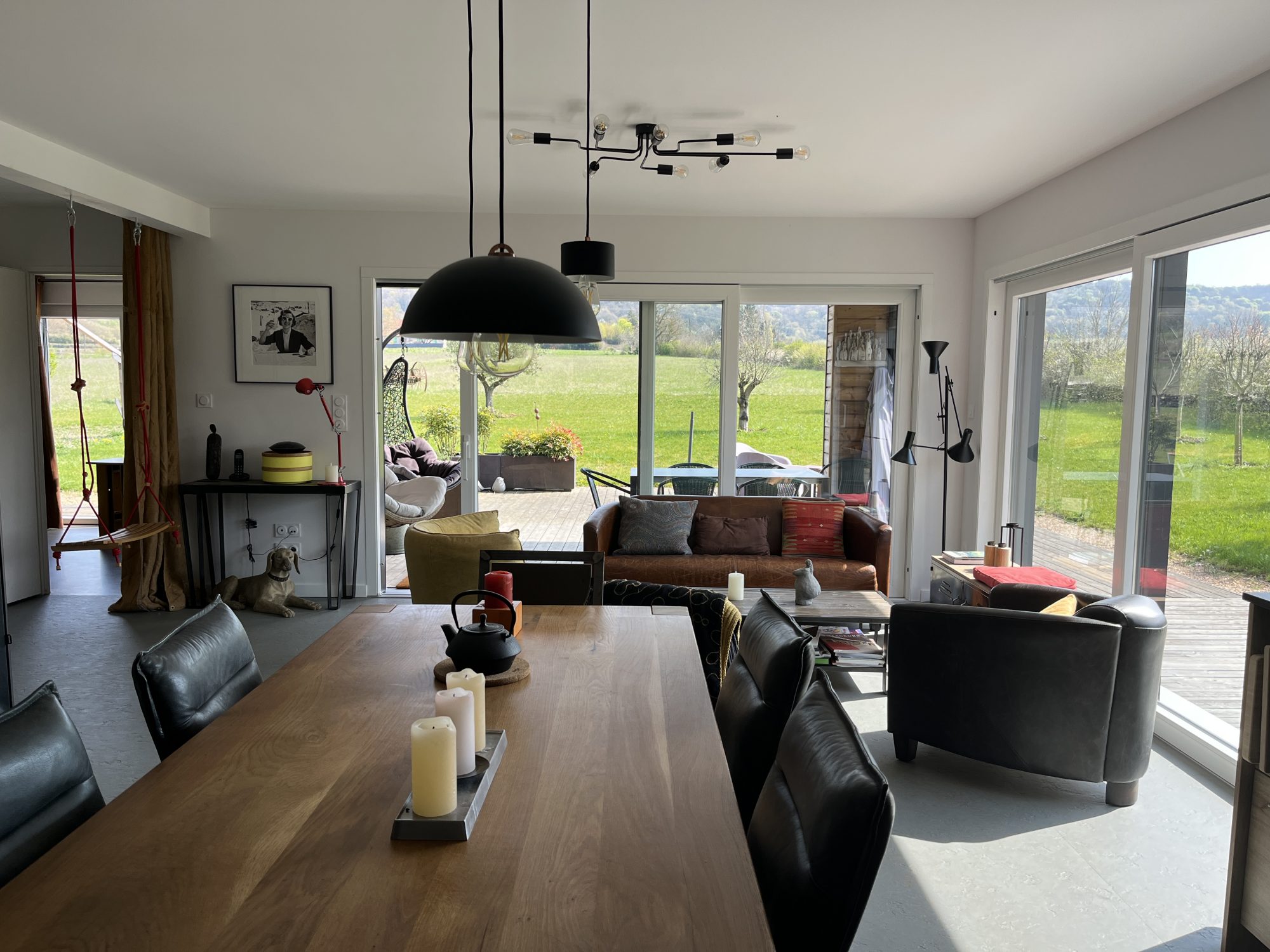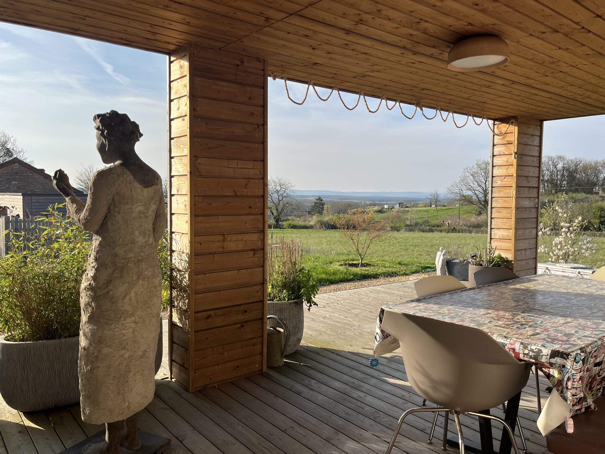 Dans un environnement calme et verdoyant, découvrez cette magnifique maison contemporaine, ossature bois BOOA avec toiture terrasse, alliant charme naturel, modernité et prestations de qualité. Construite sur vide sanitaire, l’habitation de plain-pied séduit dès l’extérieur par son architecture et ses lignes épurées. À l’intérieur, une entrée s’ouvre sur une spacieuse pièce de vie baignée de lumière grâce à de larges baies vitrées, offrant une ouverture directe sur la nature environnante. La cuisine, moderne et entièrement équipée, s’ouvre sur le salon séjour, créant un espace convivial et chaleureux. Petit cellier attenant. Côté nuit : trois chambres dont une ouvrant sur l’extérieur, une salle d’eau équipée / toilettes japonais et des toilettes séparées. Cette maison éco-responsable de 98 m² habitables dispose d’un poêle à pellets (8 kW), de radiateurs électriques en complément et d’une isolation thermique performante. Nombreux équipements : ballon thermodynamique, système de protection anticalcaire, cuve 10 000 L récupération eau avec pompe automatique, panneaux brise soleil alu, volets roulants intégrés dans l’ossature, cuisine haut de gamme. À l’extérieur, deux belles terrasses couvertes prolongent l’espace de vie avec une vue exceptionnelle et dégagée sur la campagne environnante. Implantée sur un terrain bien paysagé et arboré de 6746 m², cette maison de construction française offre un cadre de vie rare dans le respect de l’environnement, saine pour ses occupants et pour la planète. Un bien « coup de cœur ».