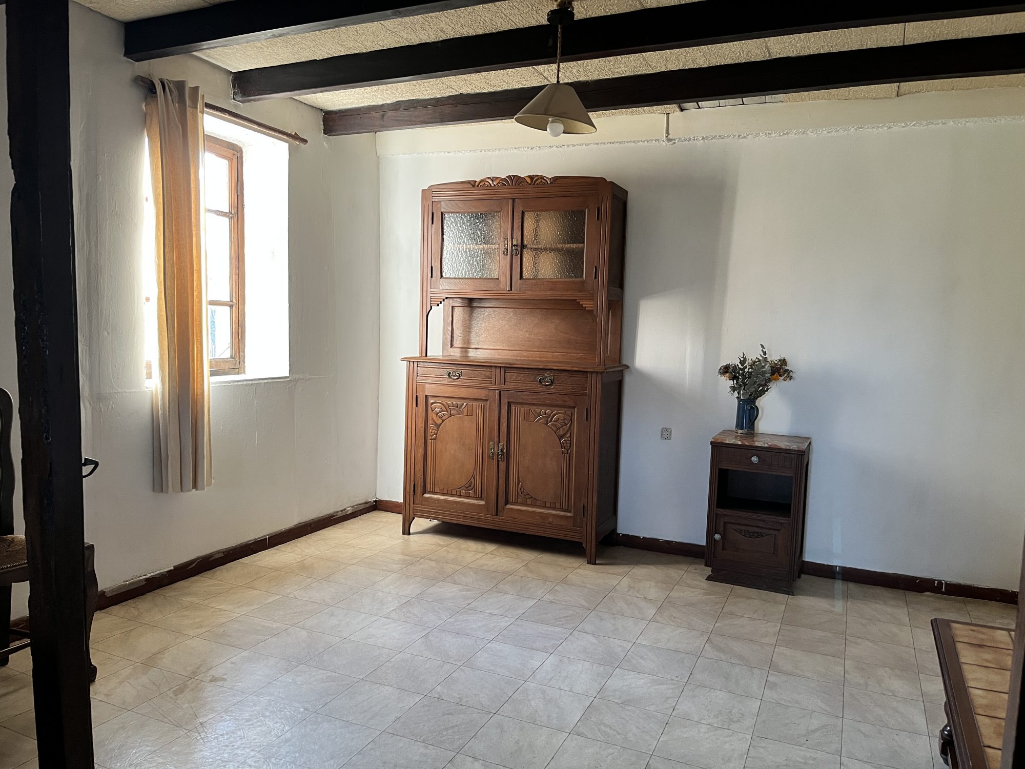 EXCLUSIVITE, TOURNUS EST, jolie fermette de 52 m², avec belle dépendance attenante de 42 m², cour à l’avant et agréable terrain de 1410 m². L’habitation comprend de plain-pied : entrée sur séjour, cuisine, salle d’eau, espace buanderie, une chambre et des toilettes séparées. Elle est équipée d’un poêle à bois performant dans le séjour, qui permet de chauffer facilement l’ensemble. Les huisseries sont principalement en simple vitrage bois avec volets bois, la chambre bénéficie de double vitrage. L’isolation est partielle, seuls les combles bénéficient d’une isolation avec laine de verre sur la partie habitable. La production d’eau chaude est assurée par un cumulus électrique (150/200L). La toiture a été rénovée en 2008 avec film sous-toiture, elle est en bon état apparent. Les façades Sud et Ouest ont bénéficié d’une rénovation avec enduit à la chaux et d’un bardage bois sur la façade Ouest. L’assainissement individuel de type fosse septique devra faire l’objet d’une mise en conformité. La mitoyenneté par le pignon Nord est non gênante, la grange attenante est un potentiel important, elle pourrait permettre un projet d’extension. La mise en valeur du colombage apporte beaucoup de charme et d’authenticité à cette maison. L’ensemble se situe sur un grand terrain arboré et clos de haies, avec deux puits, dans un environnement champêtre et très au calme.