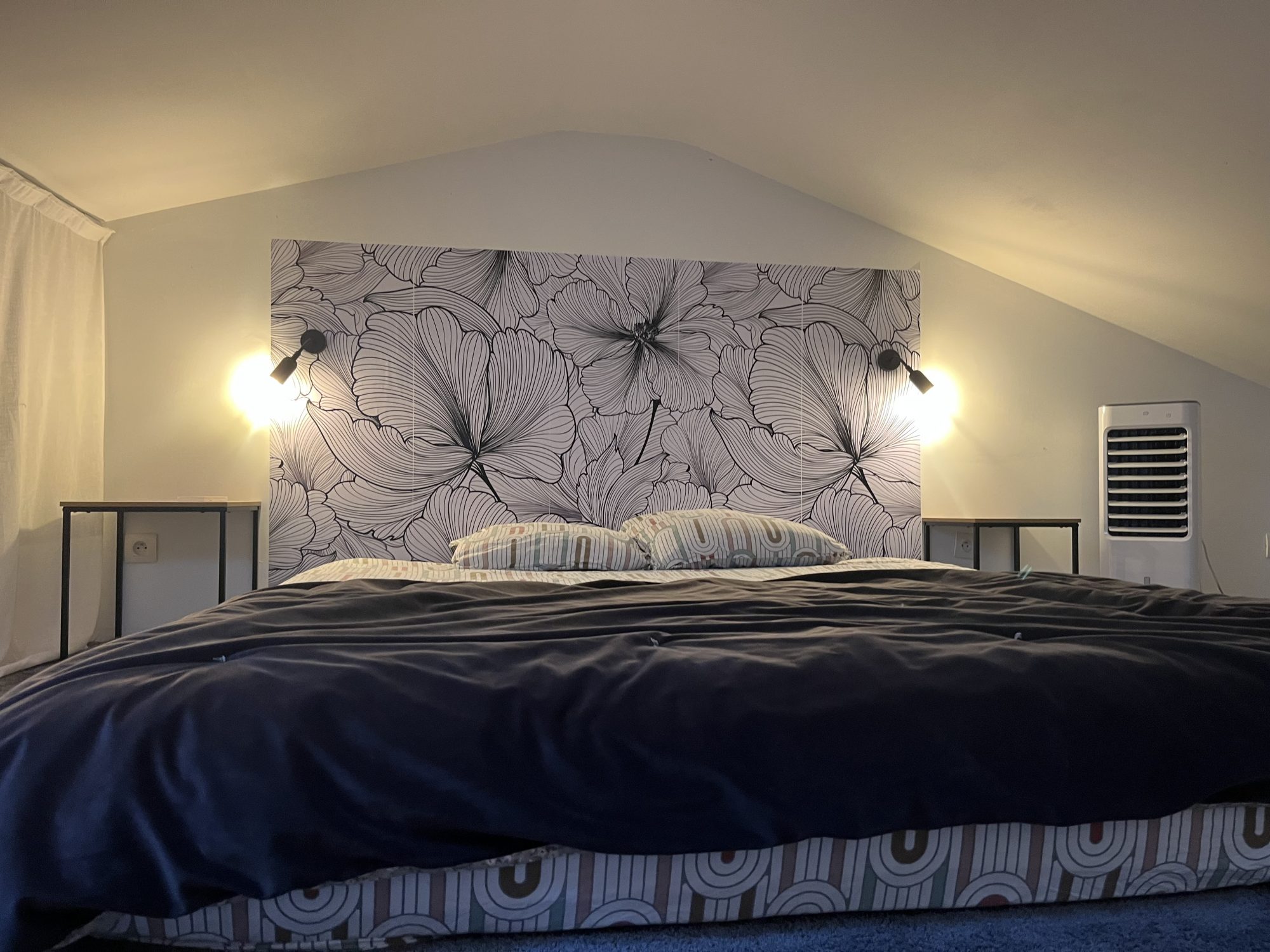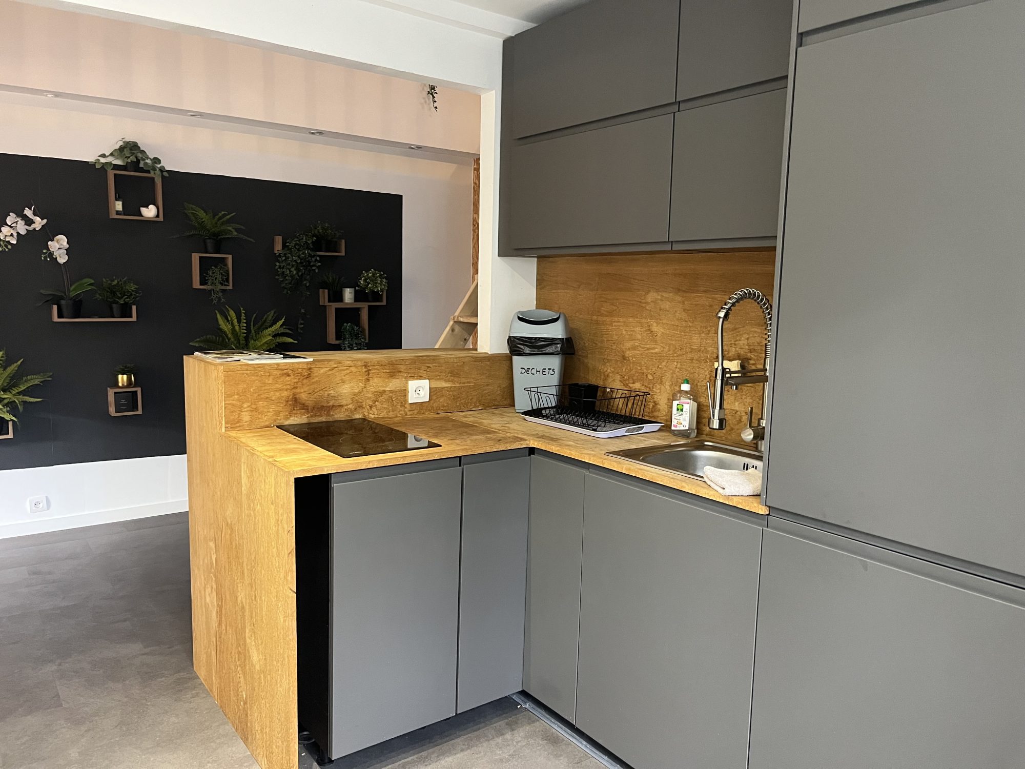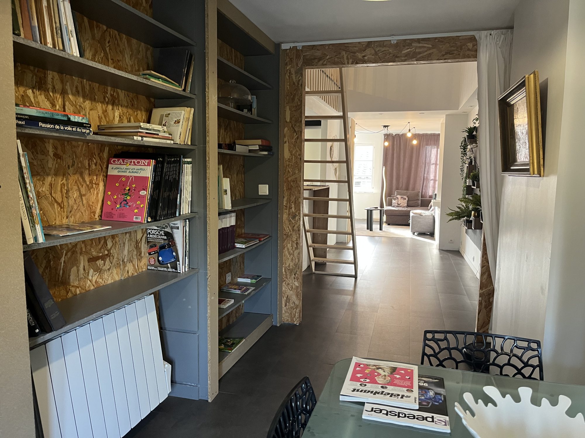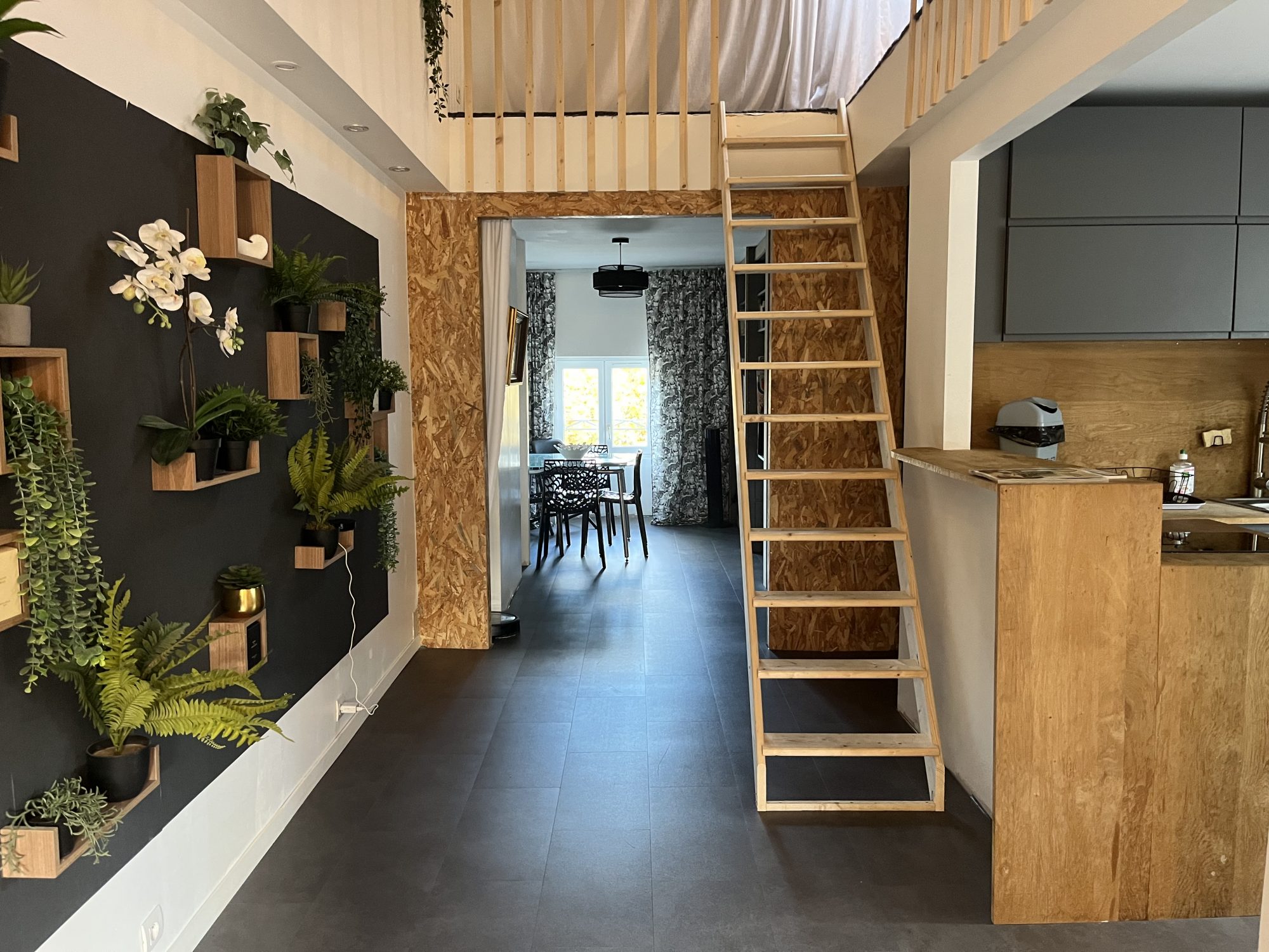 Au deuxième étage, un appartement de 60 m² comprenant une entrée sur séjour/ salle à manger, une cuisine équipée ouverte, un bureau, une salle d'eau, des toilettes séparées et une chambre mansardée en mezzanine. Petite terrasse exposé Ouest avec vue sur l'Abbaye. Ce logement est équipé d'un chauffage électrique, d'une isolation complète, et d'un double vitrage partiel.